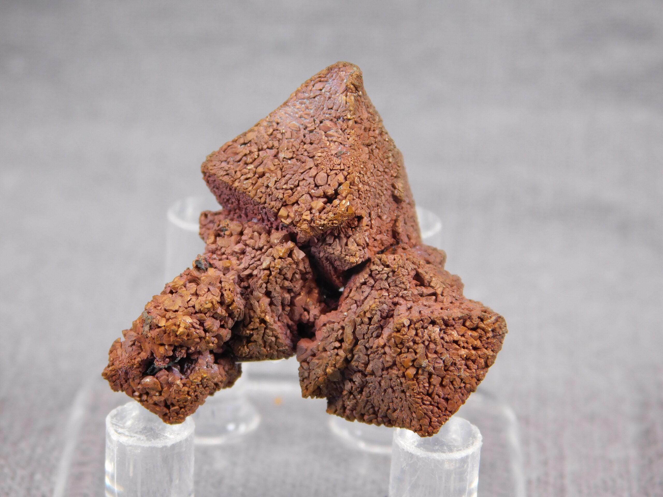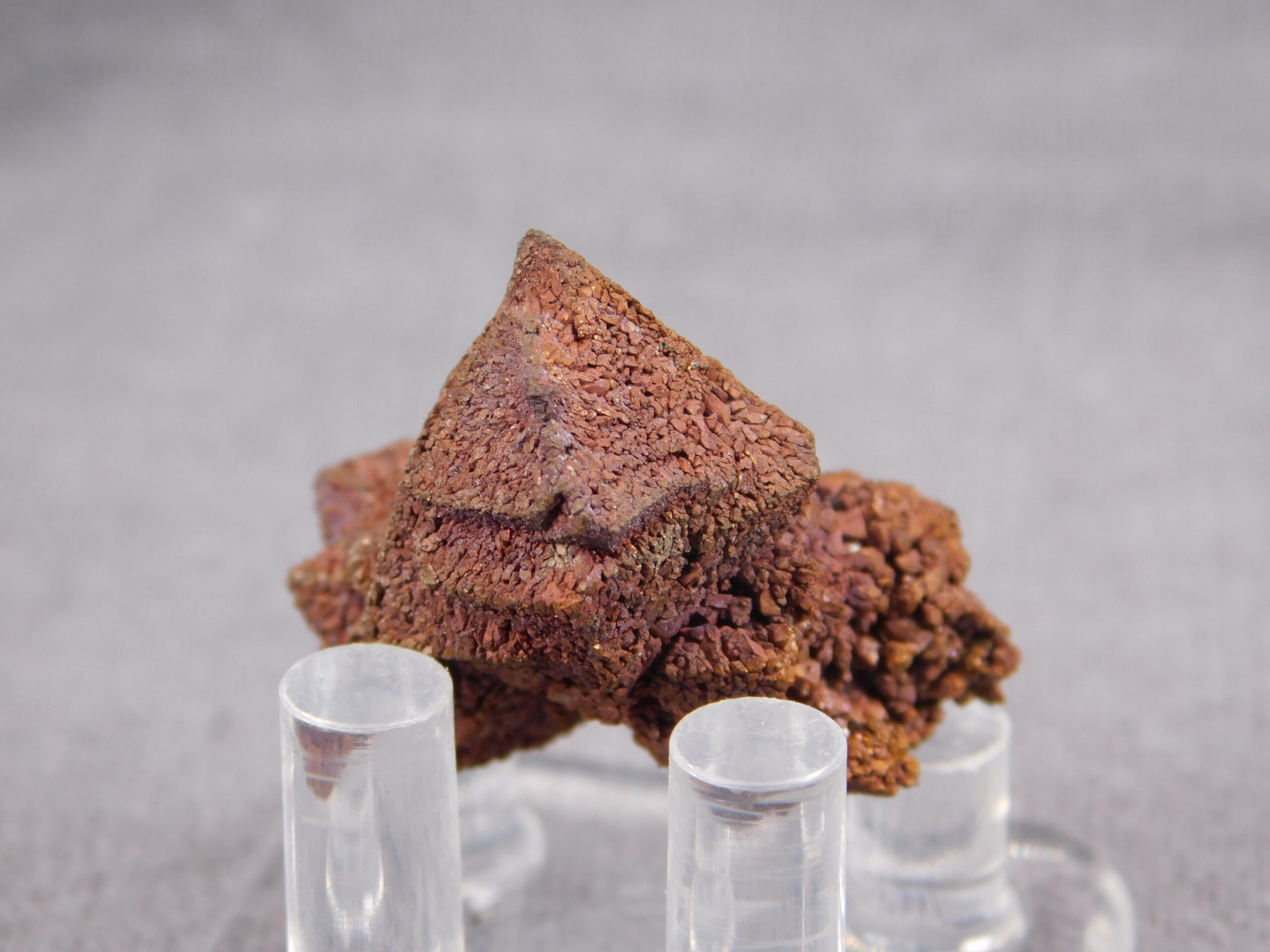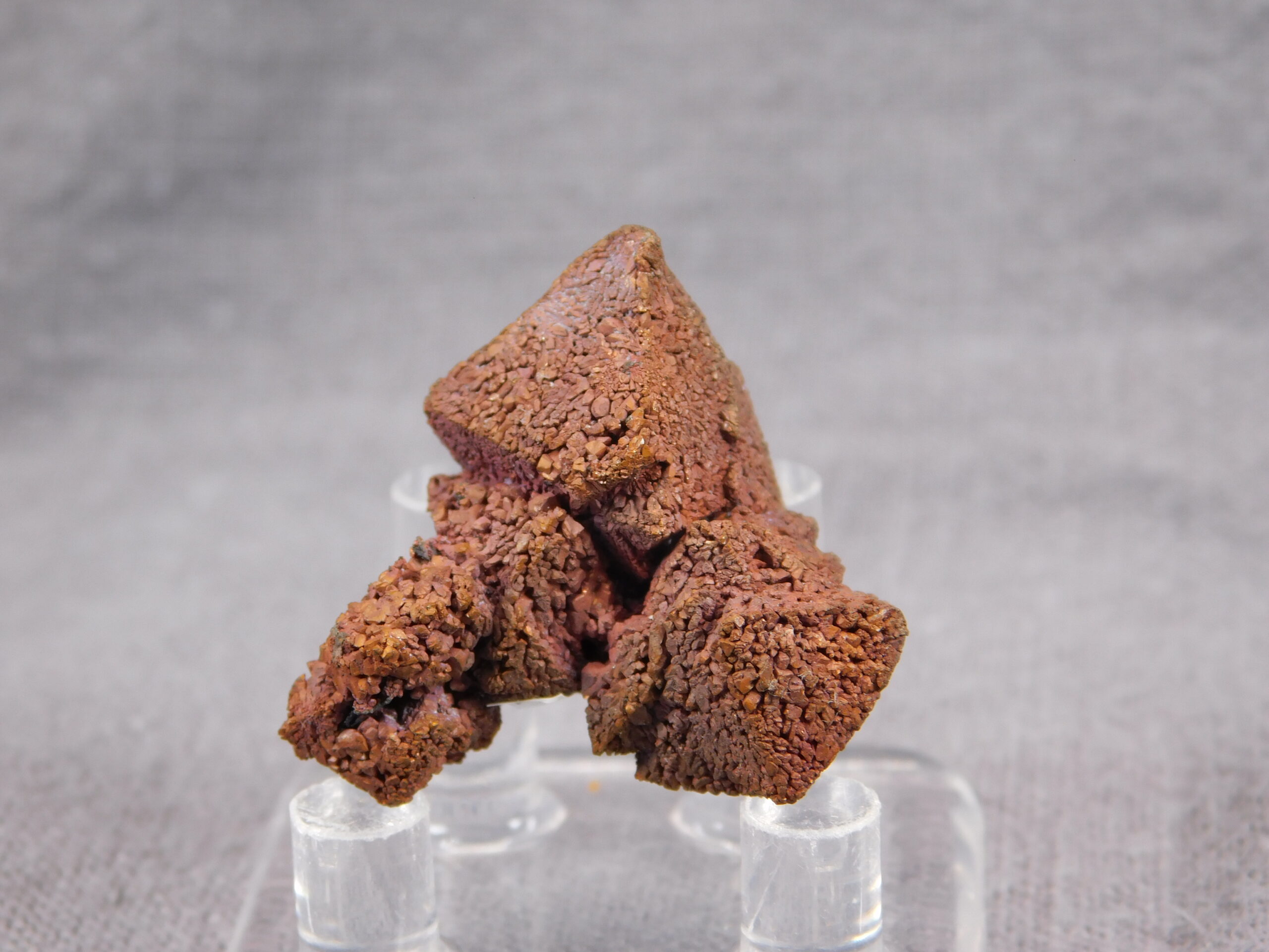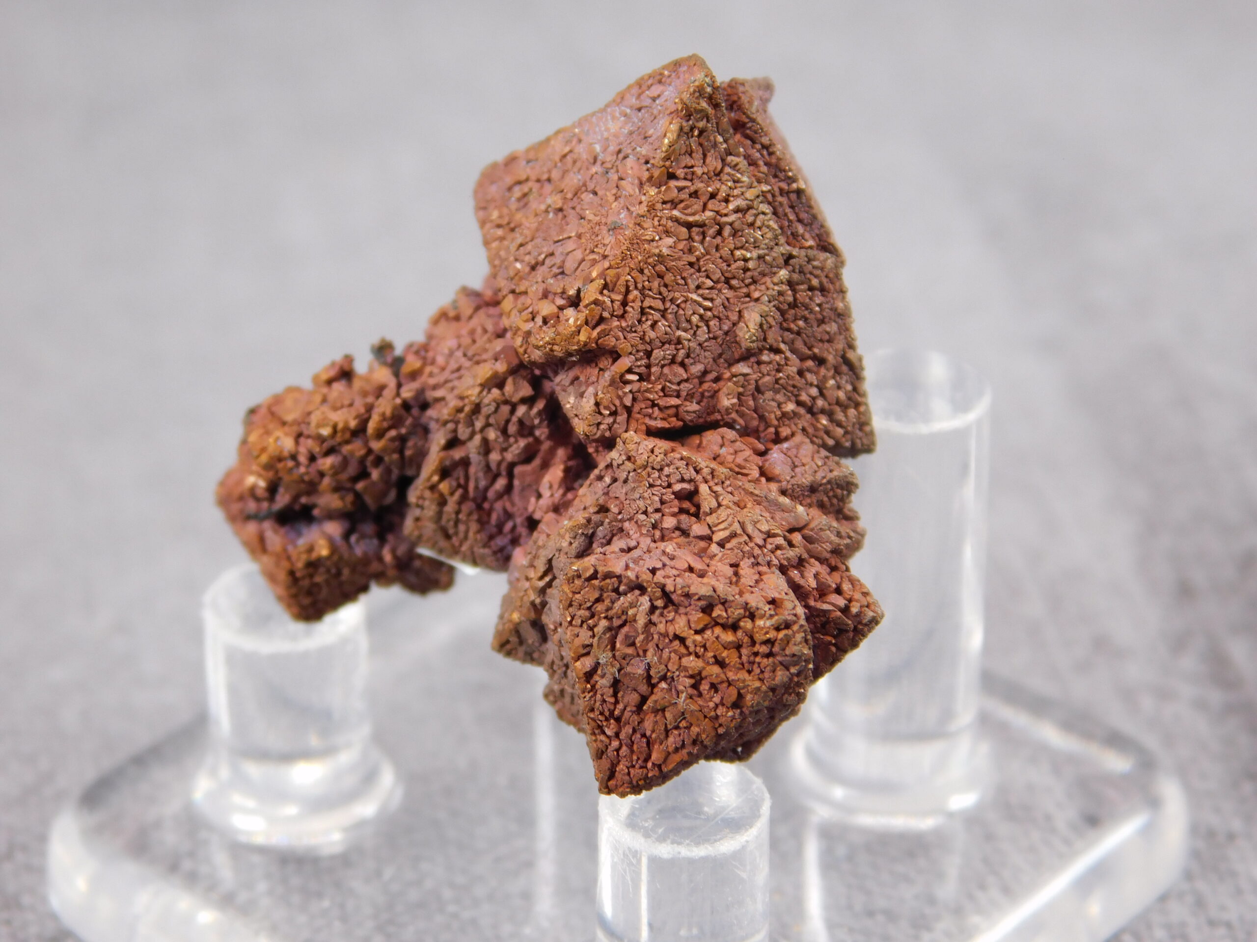 An exceptionally interesting collector’s specimen of copper pseudomorphosis after cuprite from Rubtsovsk, Russia. A fascinating specimen in which the original mineral cuprite has been replaced by fine crystals of pure copper while retaining the original crystal shape of cuprite. The specimen dates from 2010-2011; the locality has now been mined and reclaimed.