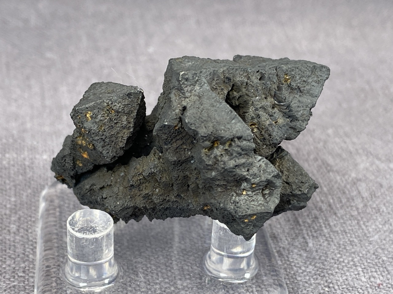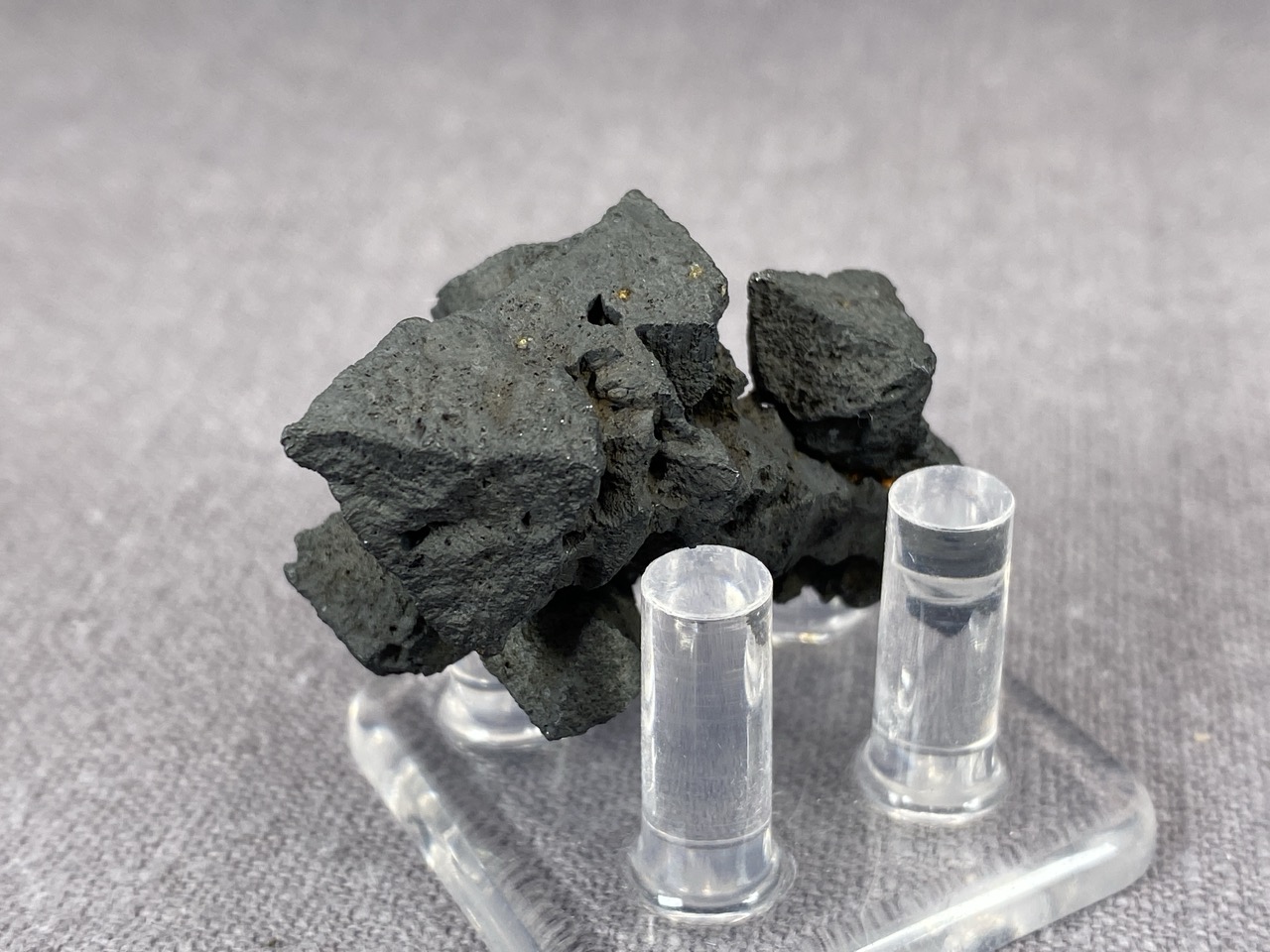 Uhlově černé krystaly akantitu pseudomorfující původní oktaedry argentitu z významného nálezu, ke kterému došlo v roce 2004 na marockém ložisku Imiter – nejvýznamnějším nalezišti stříbra v celé Africe – vzbudily ve své době mimořádný rozruch. Cenově dostupný exemplář tohoto žádaného minerálu obsahujícího stříbro.