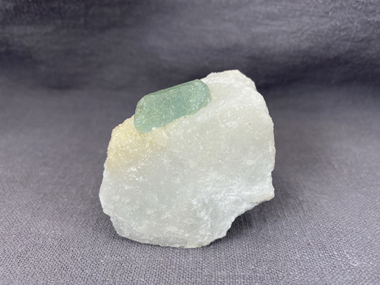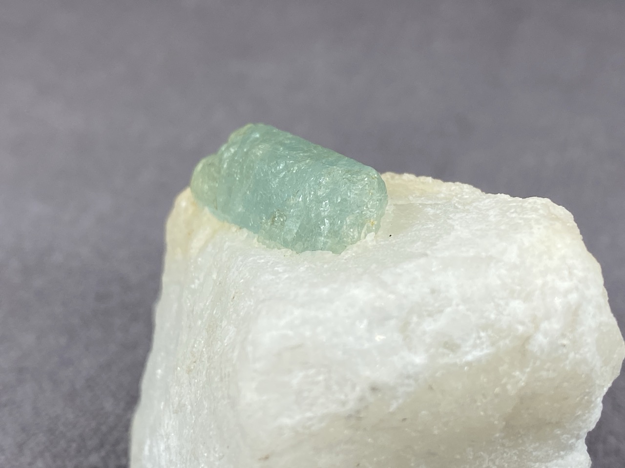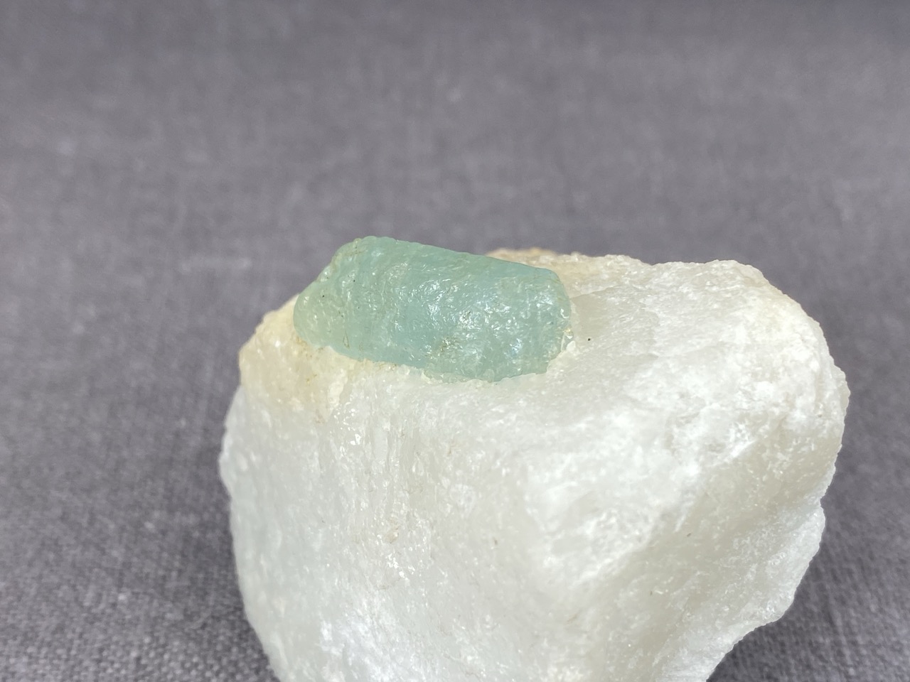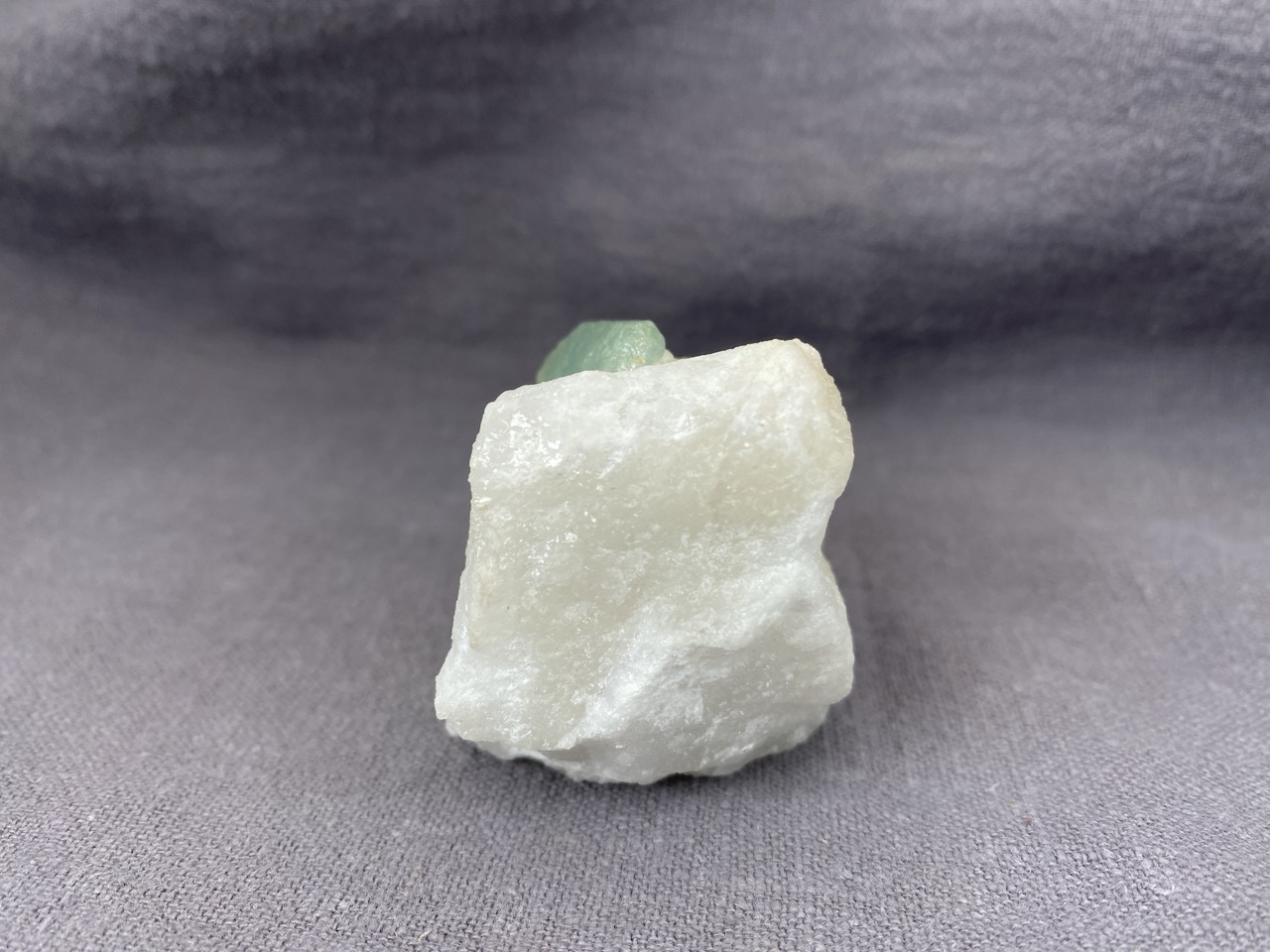 Ačkoli se barmské naleziště Mogok stalo světoznámým zejména díky nálezům špičkových rubínů, safírů a spinelů, obohacuje již několik století sběratelský trh množstvím neobvyklých mineralogických vzorků. Tento poloprůzračný světle zelený krystal apatitu vyrůstající v bílé mramorové podložce je toho dobrým příkladem.