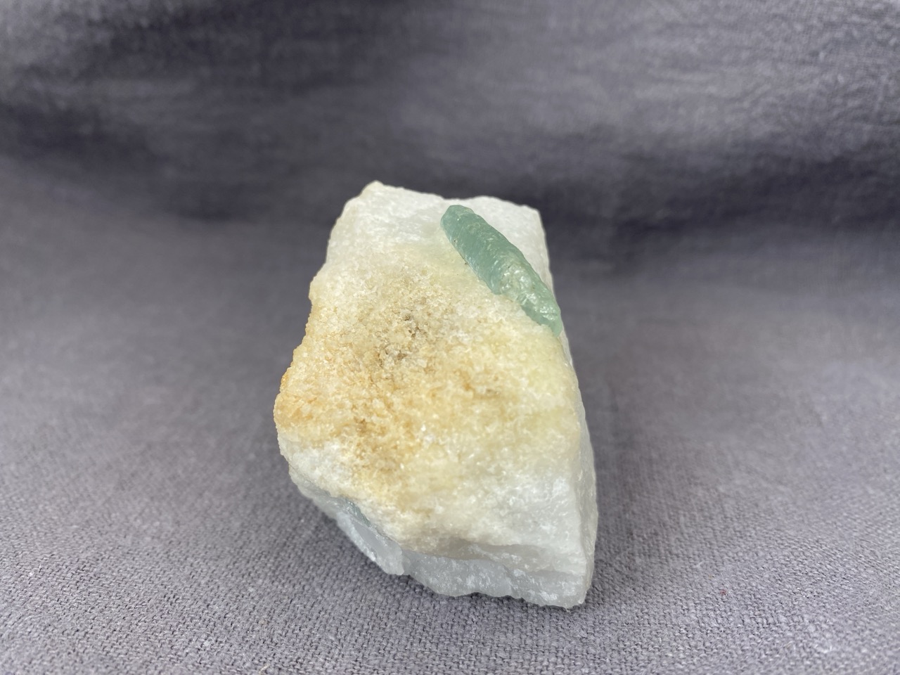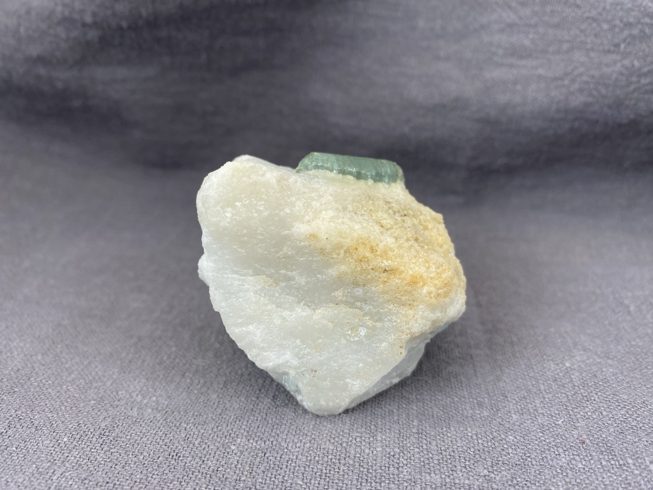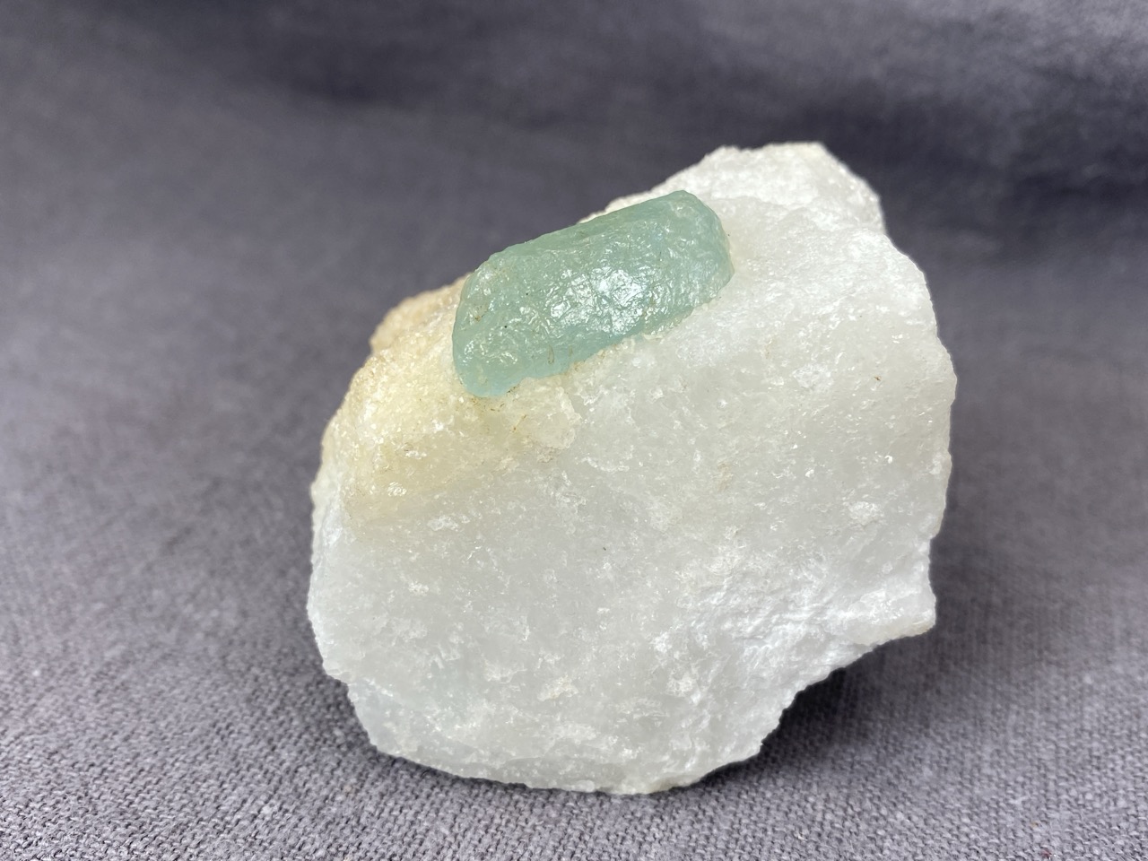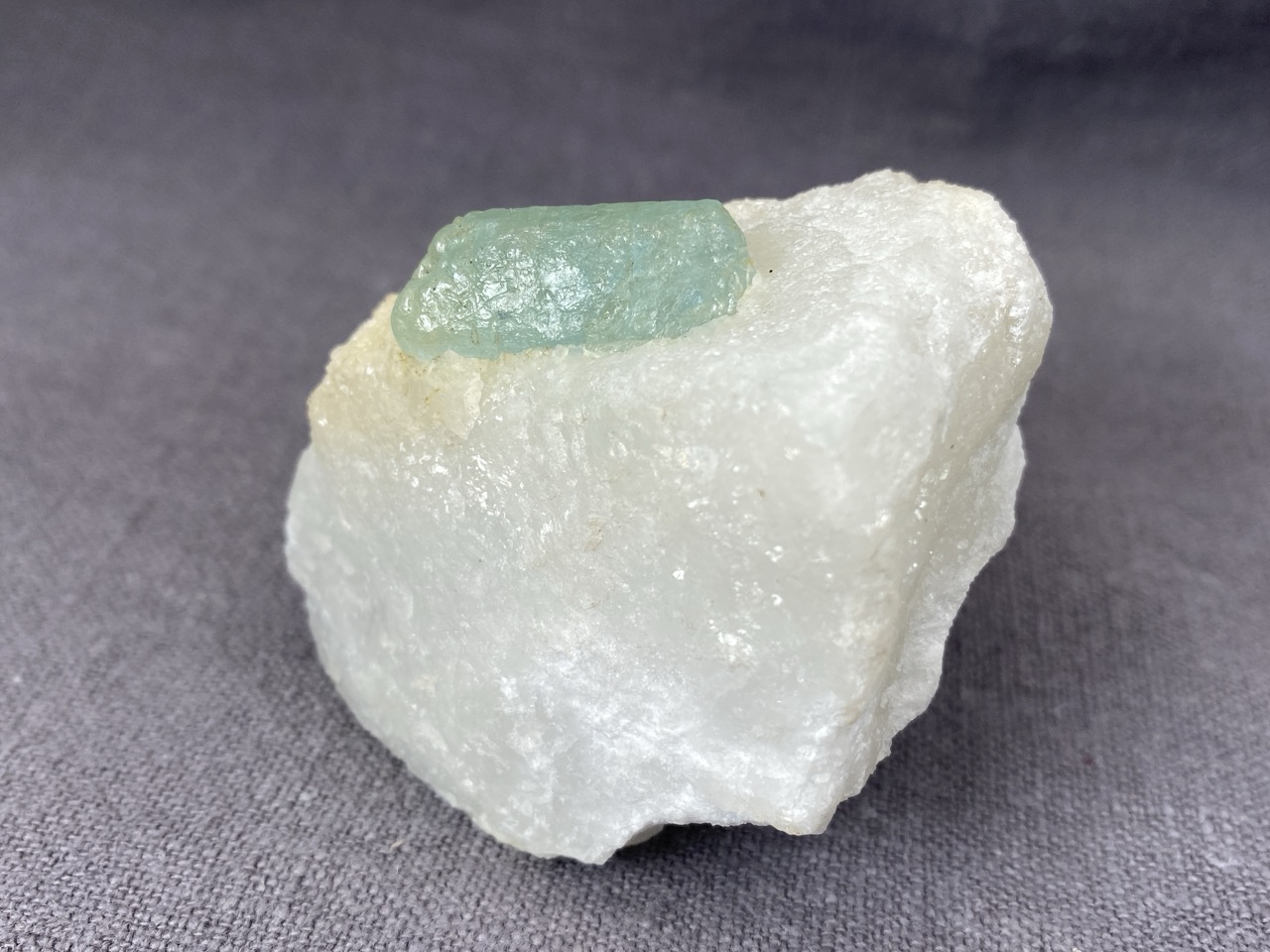 Ačkoli se barmské naleziště Mogok stalo světoznámým zejména díky nálezům špičkových rubínů, safírů a spinelů, obohacuje již několik století sběratelský trh množstvím neobvyklých mineralogických vzorků. Tento poloprůzračný světle zelený krystal apatitu vyrůstající v bílé mramorové podložce je toho dobrým příkladem.