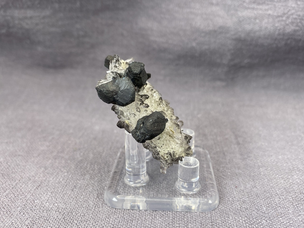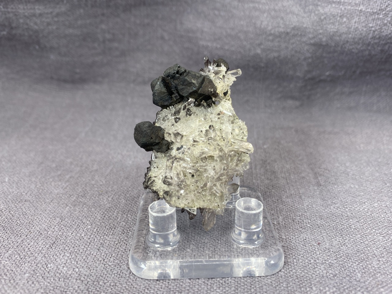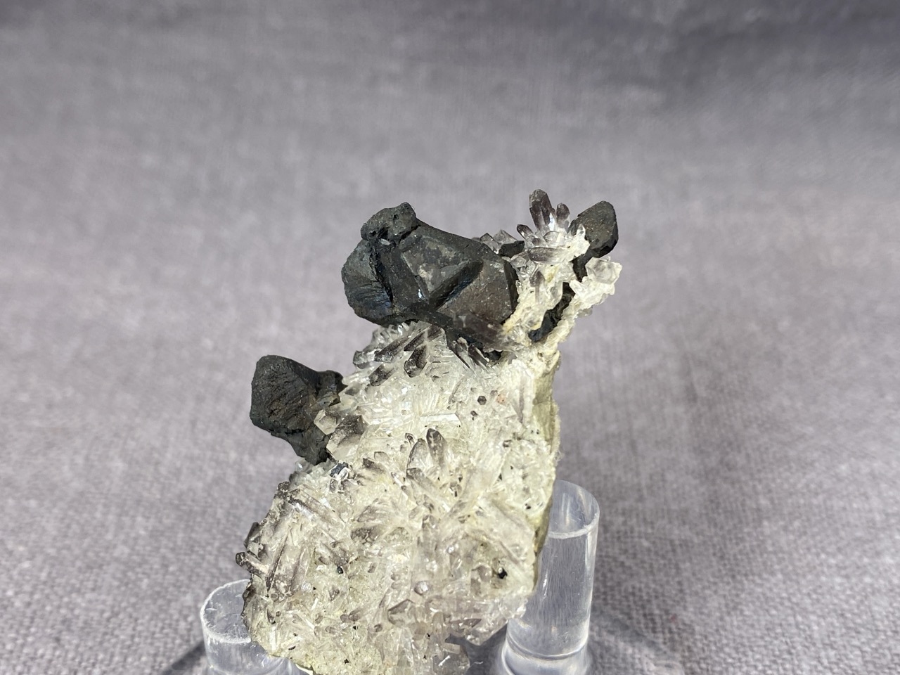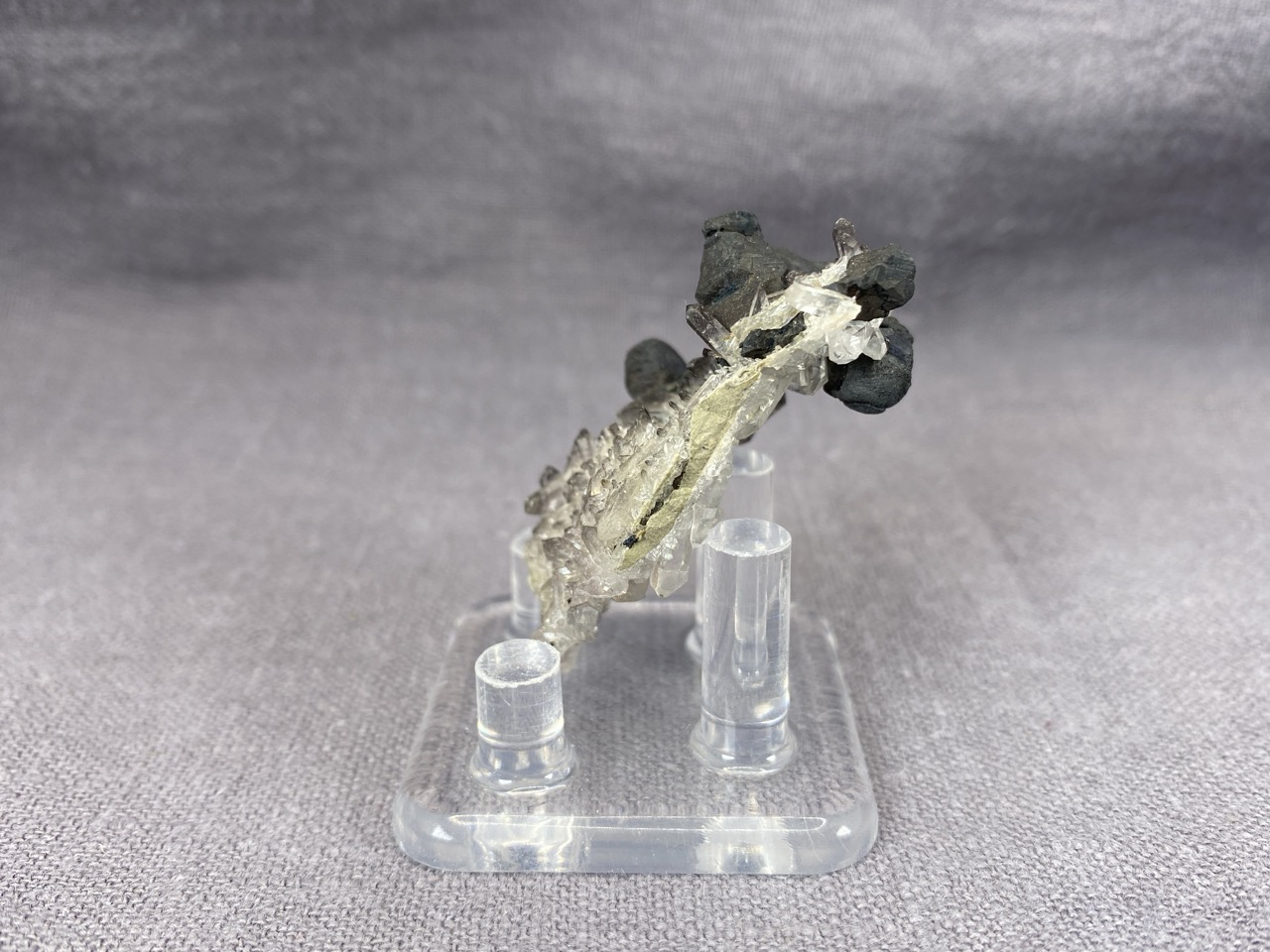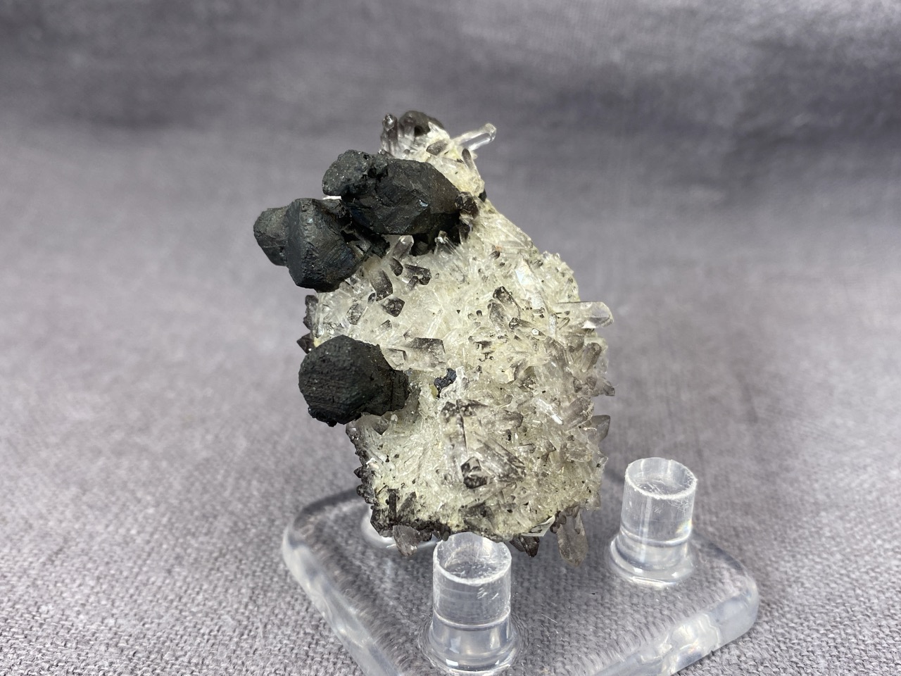 Tyto typické krystaly chalkozínu na malých průzračných krystalech křemene představují klasickou ukázku tohoto minerálu z dnes již pozapomenuté lokality Džezkazgan v Kazachstánu. Kdysi vzkvétající naleziště, které v devadesátých letech hojně obohacovalo sběratelský trh mimořádně atraktivními vzorky měděných minerálů, dnes uvadá. Tento malý vzorek je dnes již zřídka vídanou malou vzpomínkou na džezkazganské staré dobré časy.