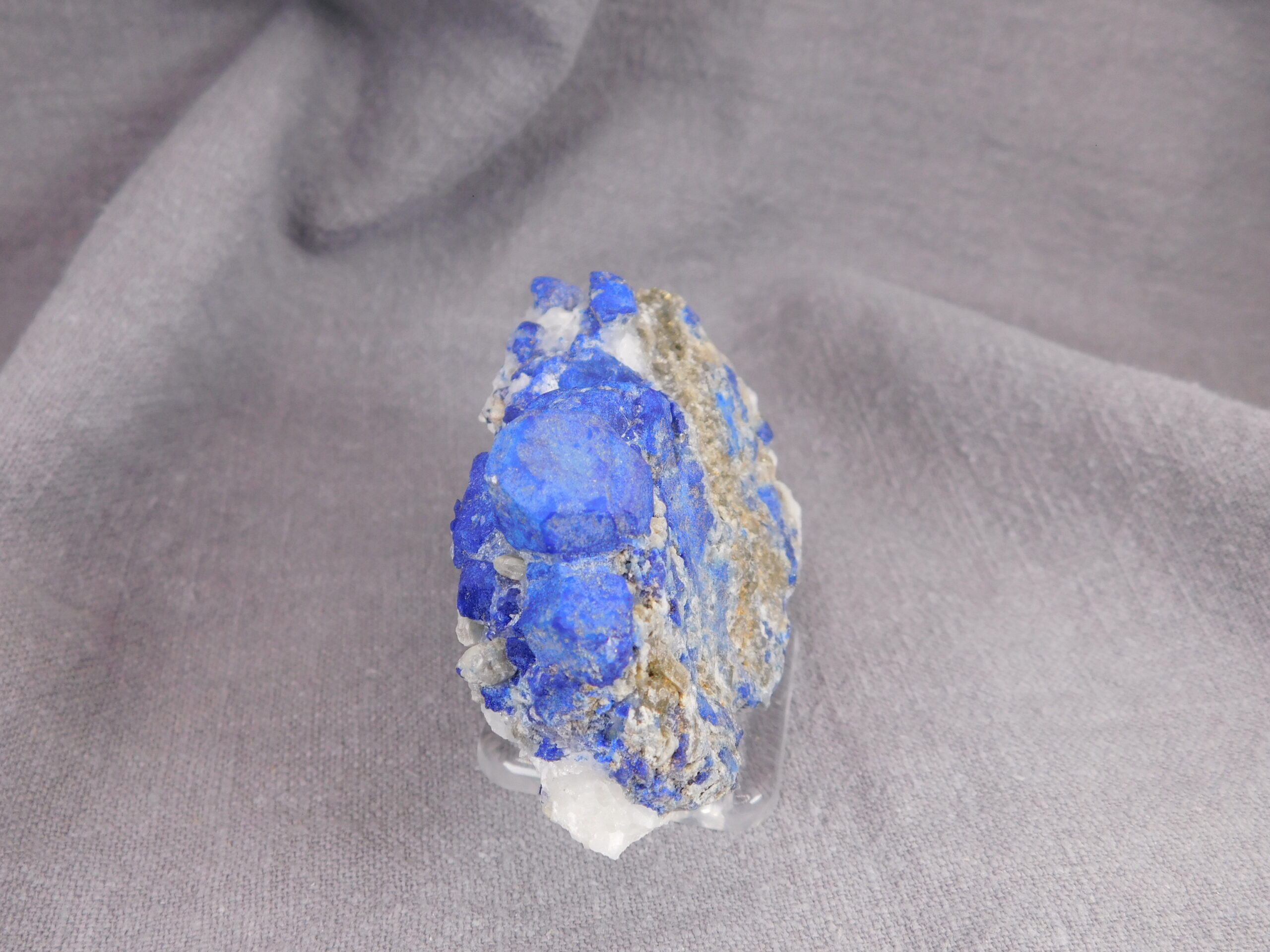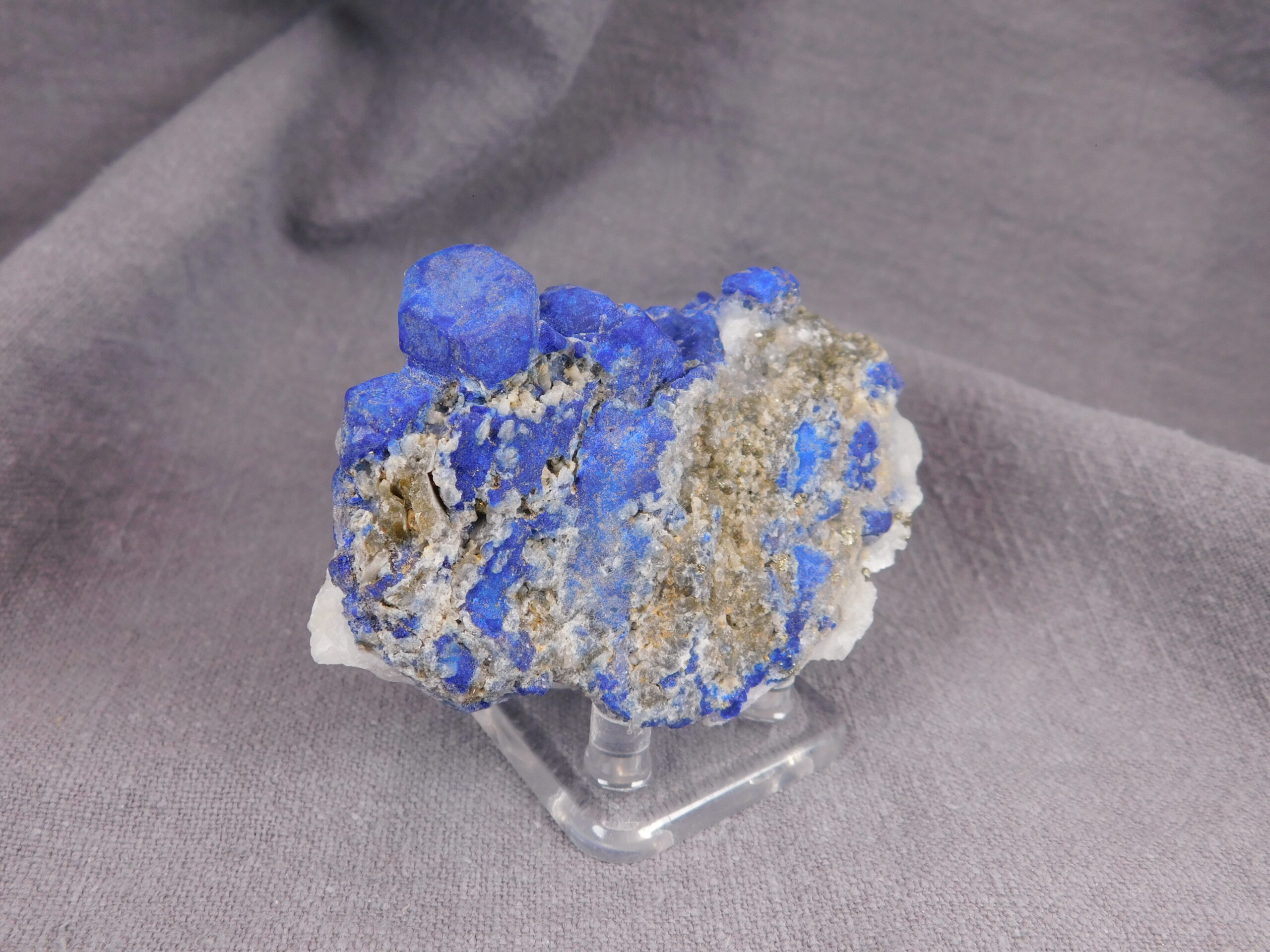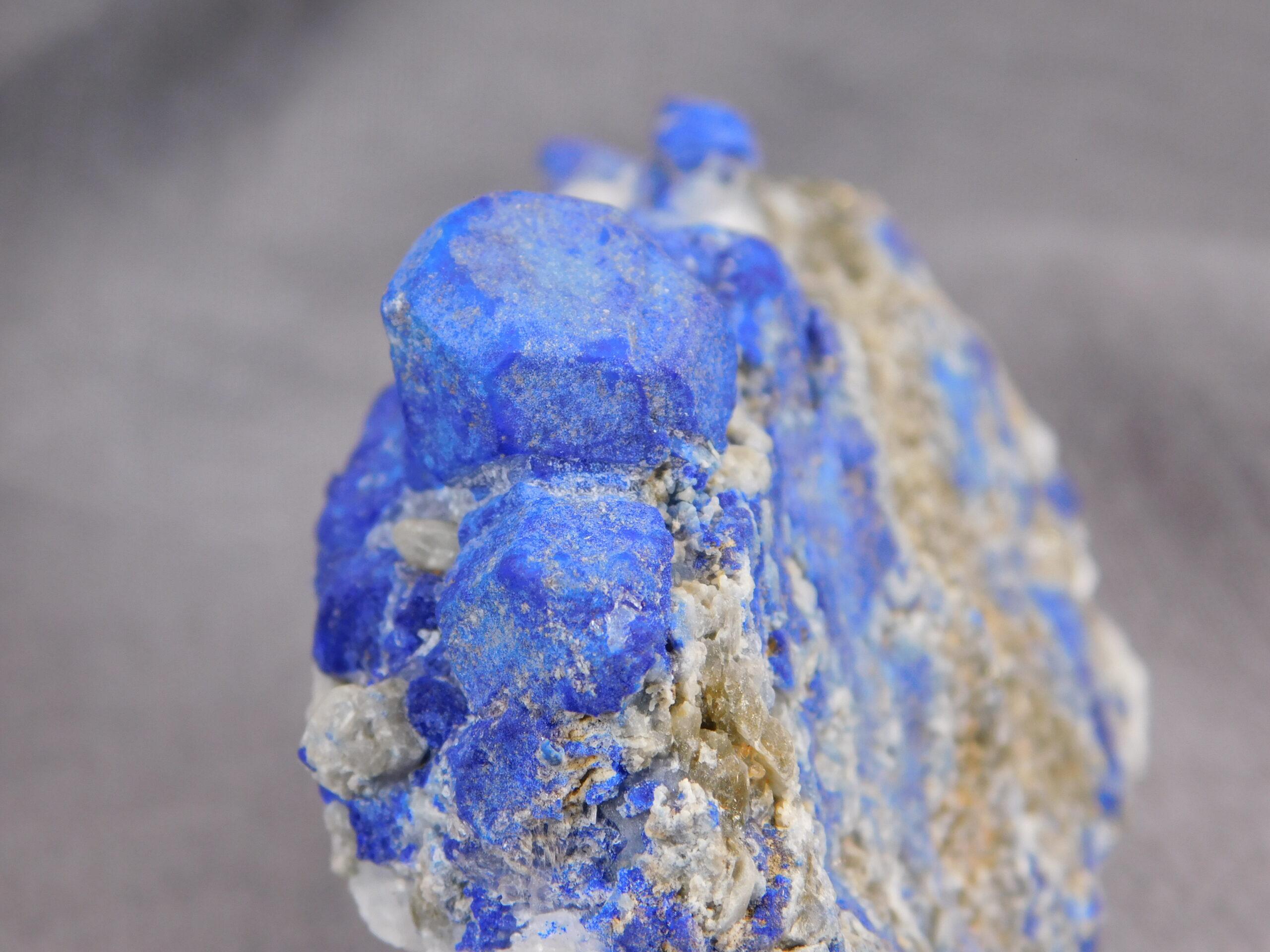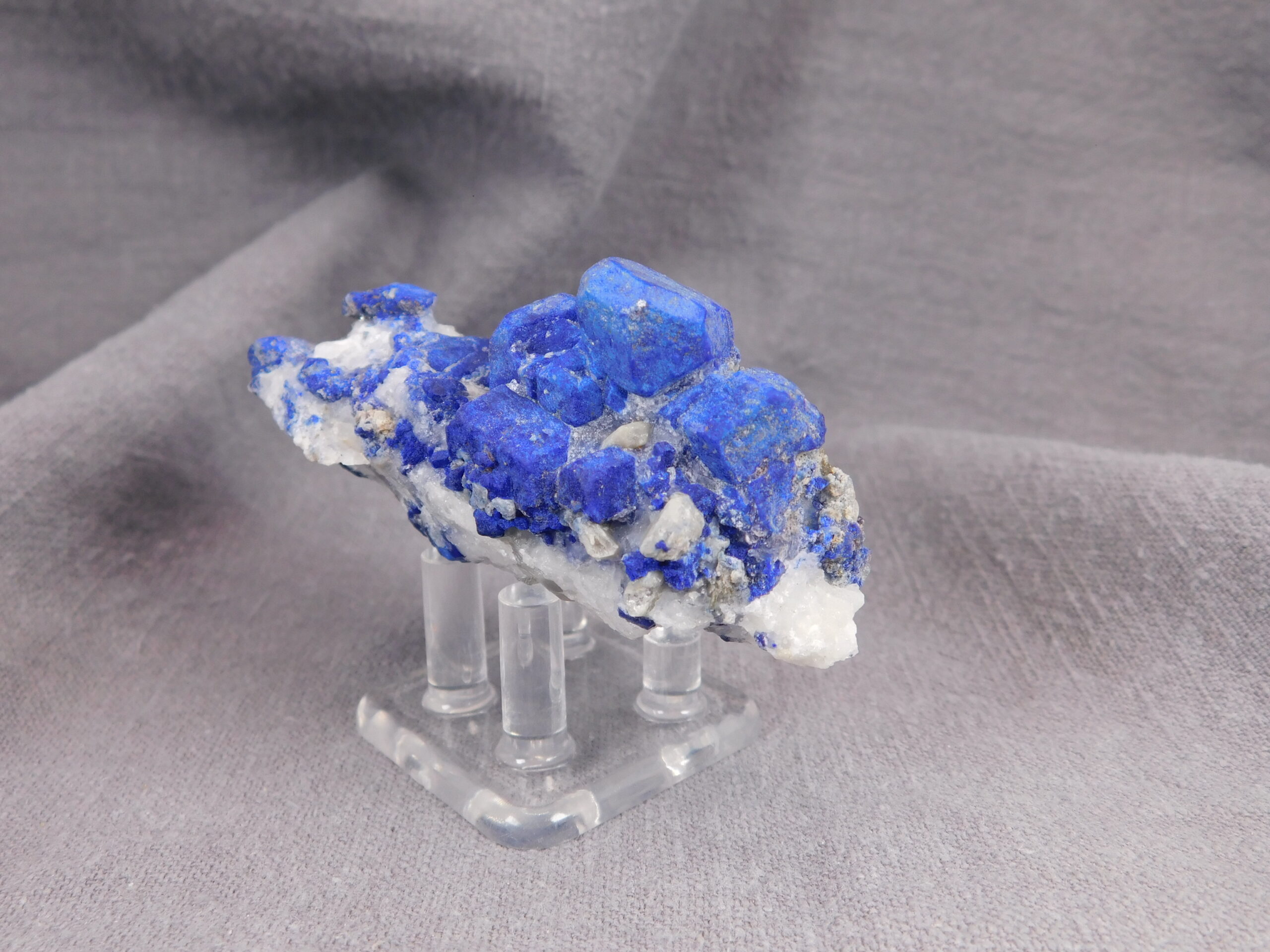 Vzorek, který na první pohled zaujme svojí výjimečně sytě modrou barvou. Vzhledem k dobře formovaným krystalům se jedná o vydařenou ukázku tohoto minerálu. Velikost největšího krystalu je 1,5 cm.