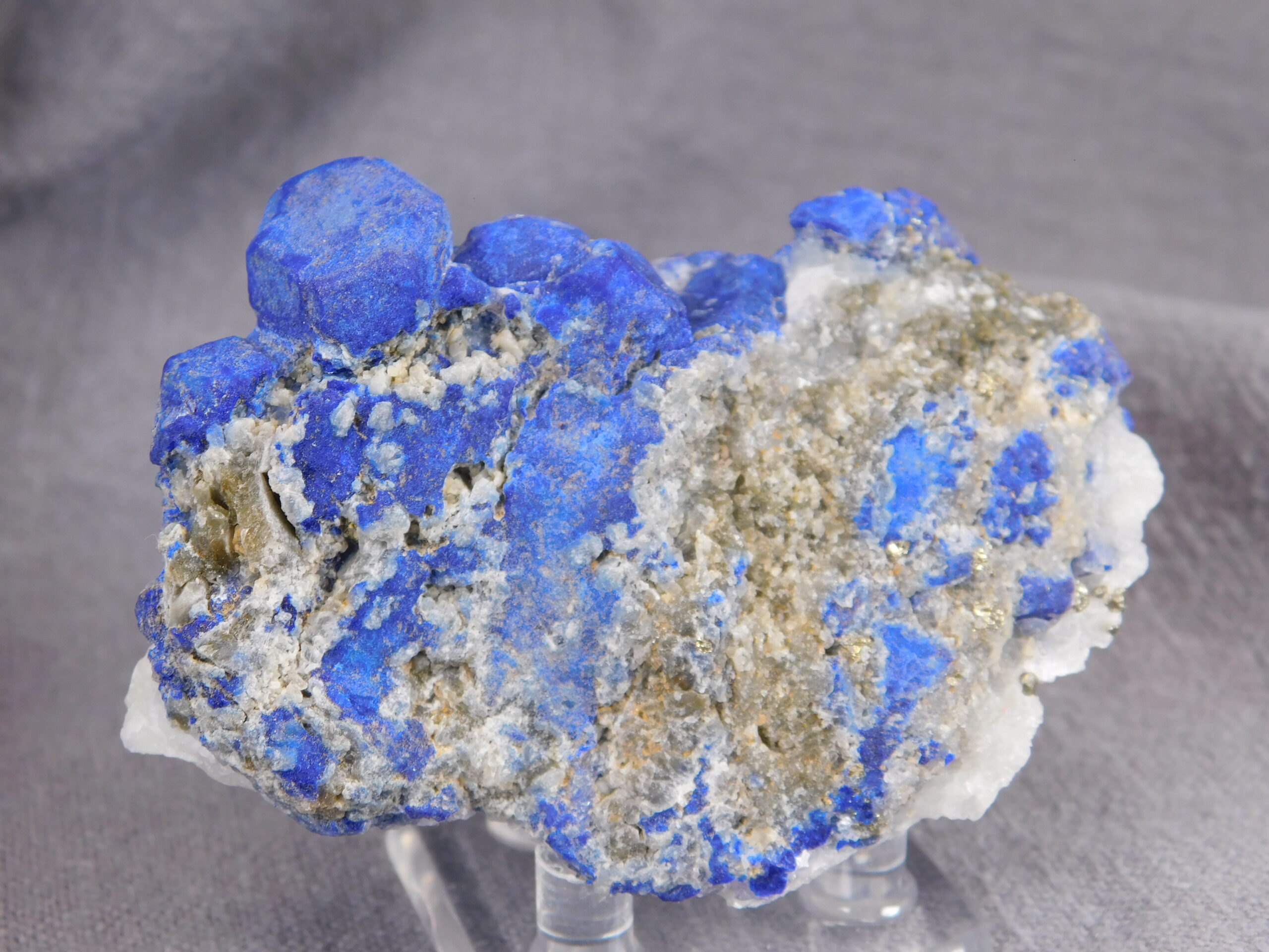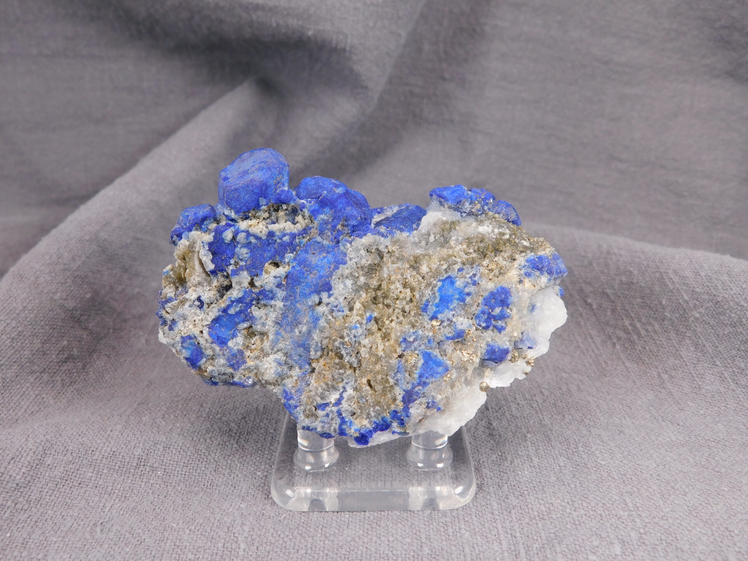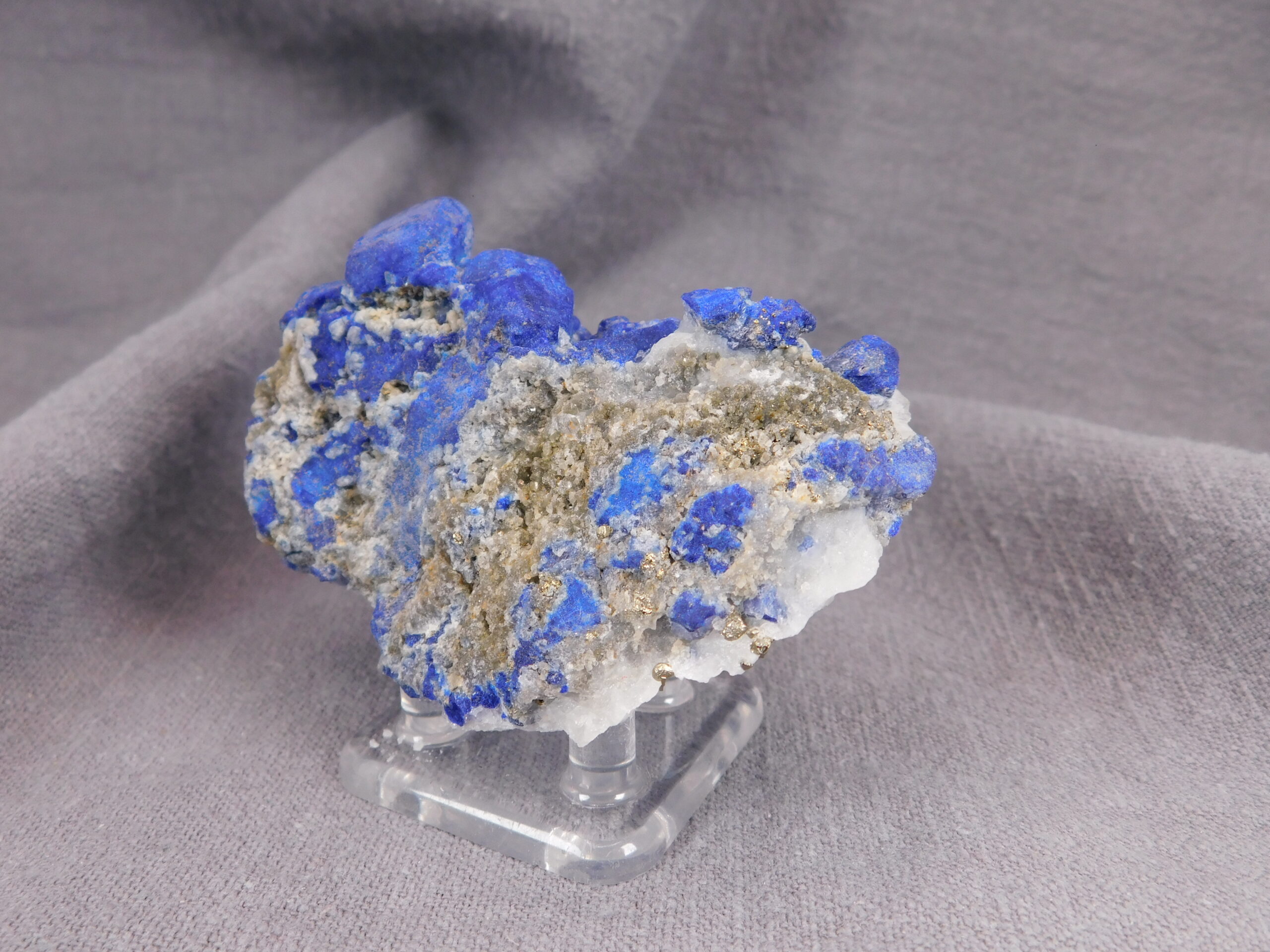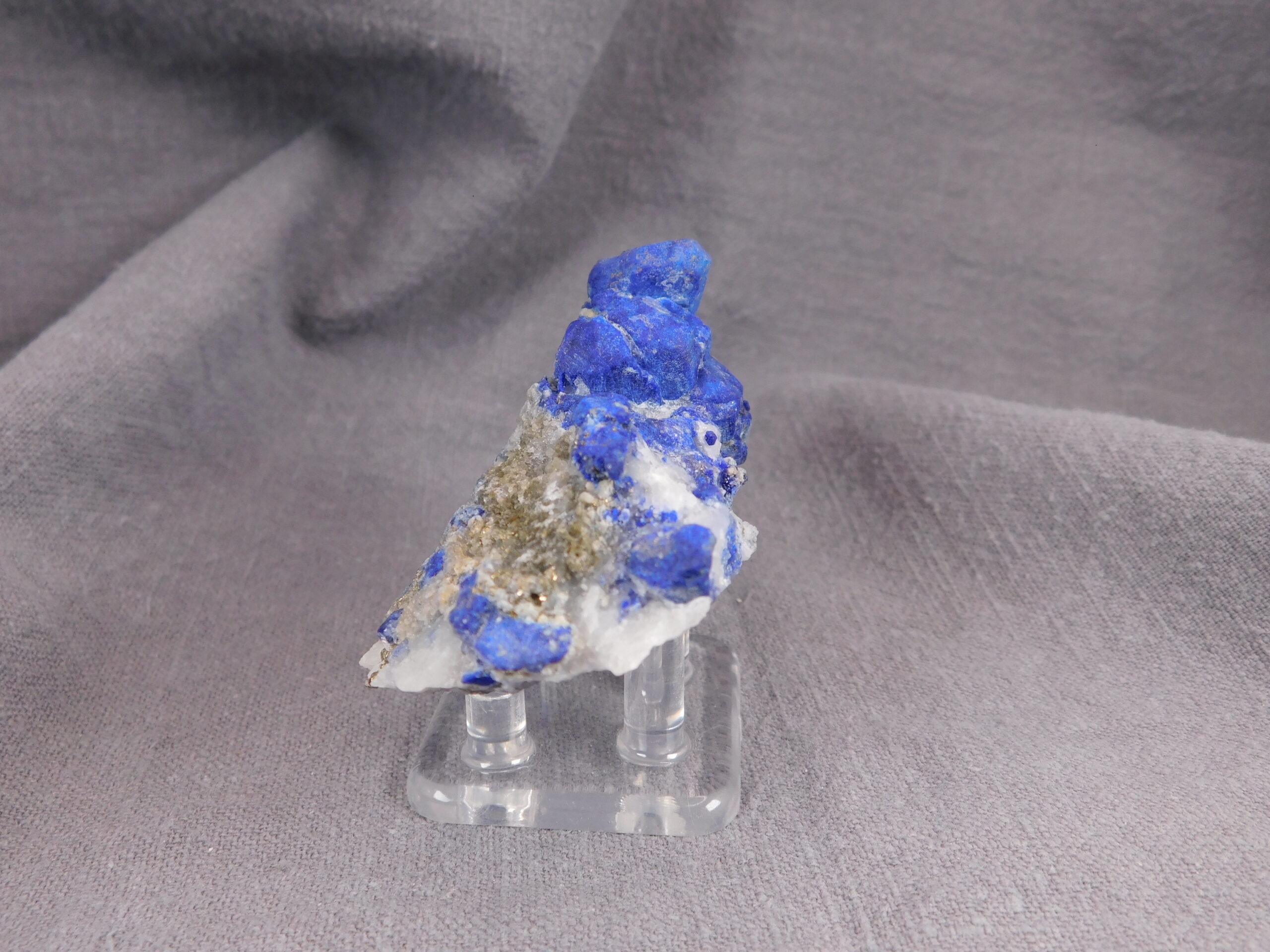 Vzorek, který na první pohled zaujme svojí výjimečně sytě modrou barvou. Vzhledem k dobře formovaným krystalům se jedná o vydařenou ukázku tohoto minerálu. Velikost největšího krystalu je 1,5 cm.